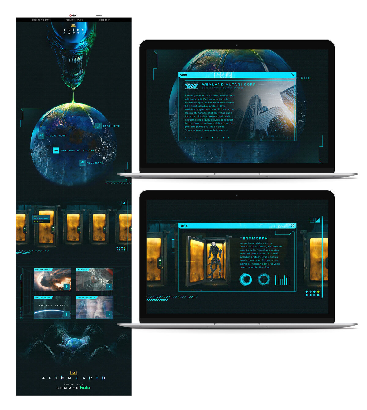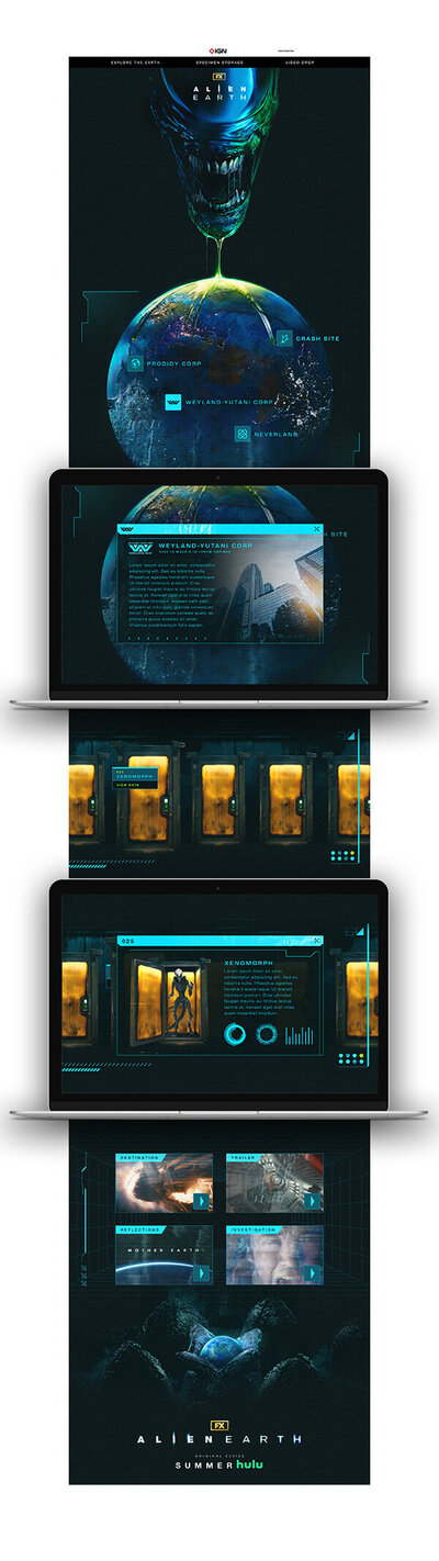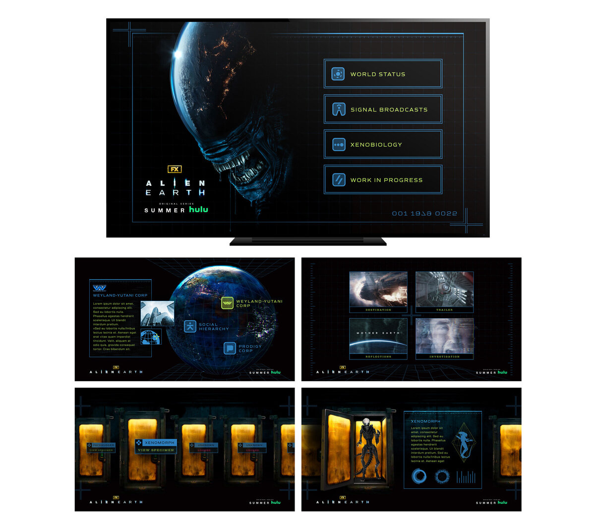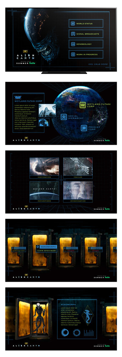 Arsonal Design had the opportunity to pitch concepts for the marketing of FX's new series, Alien Earth. I participated in ideation and completed designs for XBOX and IGN World takeovers.